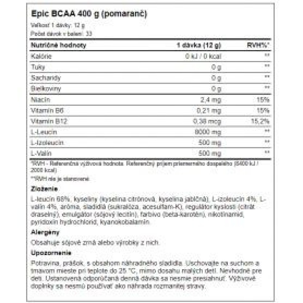 Specification Peak Performance - Epic BCAA 400 g Peak Performance